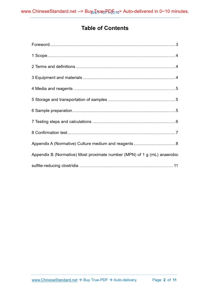 Foreword... 3 1 Scope... 4 2 Terms and definitions... 4 3 Equipment and materials... 4 4 Media and reagents... 5 5 Storage and transportation of samples... 5 6 Sample preparation... 5 7 Testing steps and calculations... 6 8 Confirmation test... 7 Appendix A (Normative) Culture medium and reagents... 8 Appendix B (Normative) Most proximate number (MPN) of 1 g (mL) anaerobic sulfite-reducing clostridia... 11Foreword