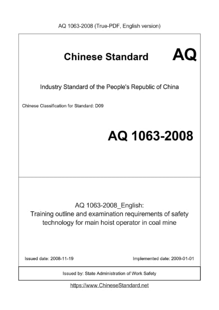 Delivery: <= 3 days. True-PDF full-copy in English will be manually translated and delivered via email. AQ 1063-2008: Training outline and examination requirements of safety technology for main hoist operator in coal mine Status: Valid