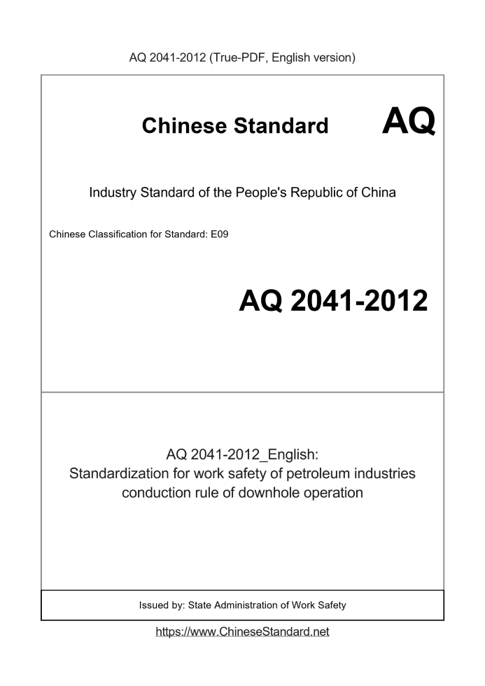 Delivery: <= 3 days. True-PDF full-copy in English will be manually translated and delivered via email. AQ 2041-2012: Standardization for work safety of petroleum industries conduction rule of downhole operation Status: Valid