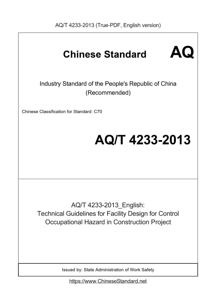 Delivery: <= 3 days. True-PDF full-copy in English will be manually translated and delivered via email. AQ/T 4233-2013: Technical Guidelines for Facility Design for Control Occupational Hazard in Construction Project Status: Valid