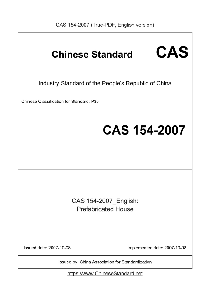 Delivery: <= 6 days. True-PDF full-copy in English will be manually translated and delivered via email. CAS154-2007: Prefabricated House Status: Valid