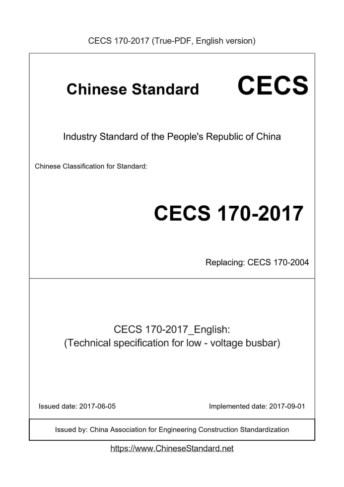Basic dataStandard ID: CECS 170-2017 (CECS170-2017)Description (Translated English): (Technical specification for low - voltage busbar) Sector / Industry: Construction Industry Standard Date of Issue: 2017-06-05 Date of Implementation: 2017-09-01 Older Standard (superseded by this standard): CECS 170-2004 Issuing agency(ies): China Association for Engineering Construction Standardization Tips & Frequently Asked Questions:Question 1: How long will the true-PDF of CECS 170-2017_English be delivered?Answer: Upon your order, we will start to translate CECS 170-2017_English as soon as possible, and keep you informed of the progress. The lead time is typically 1 ~ 3 working days. The lengthier the document the longer the lead time.Question 2: Can I share the purchased PDF of CECS 170-2017_English with my colleagues?Answer: Yes. The purchased PDF of CECS 170-2017_English will be deemed to be sold to your employer/organization who actually pays for it, including your colleagues and your employer's intranet.Question 3: Does the price include tax/VAT?Answer: Yes. Our tax invoice, downloaded/delivered in 9 seconds, includes all tax/VAT and complies with 100+ countries' tax regulations (tax exempted in 100+ countries) -- See Avoidance of Double Taxation Agreements (DTAs): List of DTAs signed between Singapore and 100+ countriesQuestion 4: Do you accept my currency other than USD?Answer: Yes. If you need your currency to be printed on the invoice, please write an email to Sales@ChineseStandard.net. In 2 working-hours, we will create a special link for you to pay in any currencies. Otherwise, follow the normal steps: Add to Cart -- Checkout -- Select your currency to pay.Question 5: Should I purchase the latest version CECS 170-2017?Answer: Yes. Unless special scenarios such as technical constraints or academic study, you should always prioritize to purchase the latest version CECS 170-2017 even if the enforcement date is in future. Complying with the latest version means that, by default, it also complies with all the earlier versions, technically. |