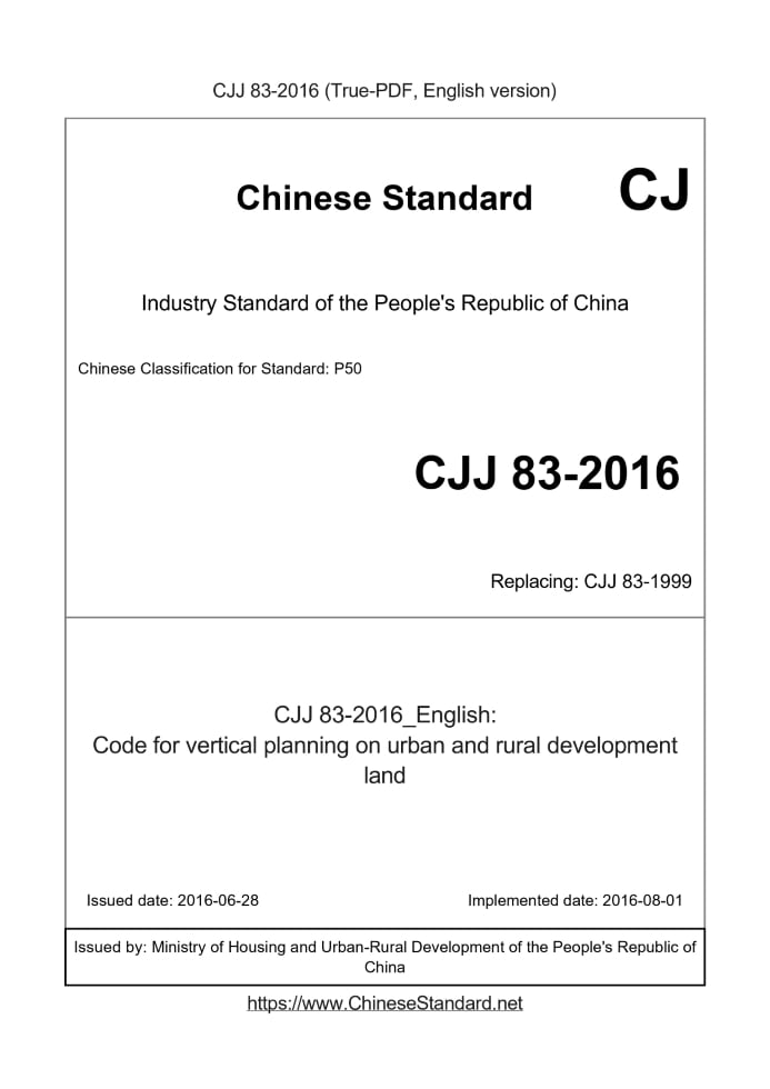 Delivery: <= 6 days. True-PDF full-copy in English will be manually translated and delivered via email. CJJ 83-2016: Code for vertical planning on urban and rural development land Status: Valid CJJ 83: Historical versions