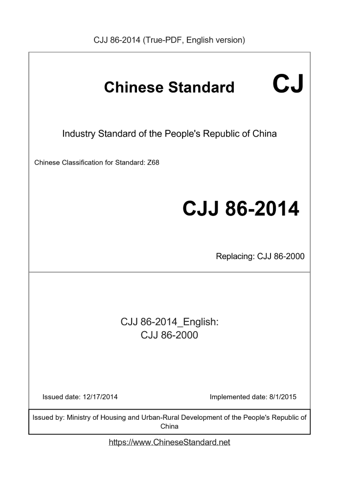 Delivery: <= 13 days. True-PDF full-copy in English will be manually translated and delivered via email. CJJ 86-2014: CJJ 86-2000 Status: Valid