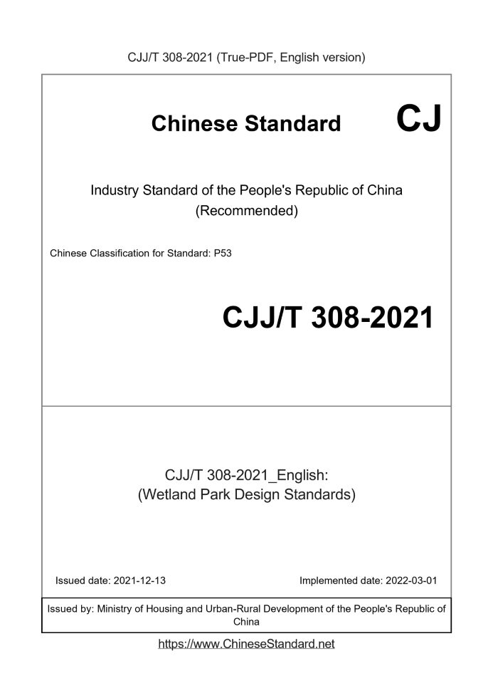 Basic dataStandard ID: CJJ/T 308-2021 (CJJ/T308-2021)Description (Translated English): (Wetland Park Design Standards) Sector / Industry: Urban Construction Industry Standard (Recommended) Classification of Chinese Standard: P53 Classification of International Standard: 91.020 Date of Issue: 2021-12-13 Date of Implementation: 2022-03-01 Issuing agency(ies): Ministry of Housing and Urban-Rural Development of the People's Republic of China Summary: This standard applies to the design of newly built, expanded, renovated and restored wetland parks. Tips & Frequently Asked Questions:Question 1: How long will the true-PDF of CJJT308-2021_English be delivered?Answer: Upon your order, we will start to translate CJJT308-2021_English as soon as possible, and keep you informed of the progress. The lead time is typically 1 ~ 3 working days. The lengthier the document the longer the lead time.Question 2: Can I share the purchased PDF of CJJT308-2021_English with my colleagues?Answer: Yes. The purchased PDF of CJJT308-2021_English will be deemed to be sold to your employer/organization who actually pays for it, including your colleagues and your employer's intranet.Question 3: Does the price include tax/VAT?Answer: Yes. Our tax invoice, downloaded/delivered in 9 seconds, includes all tax/VAT and complies with 100+ countries' tax regulations (tax exempted in 100+ countries) -- See Avoidance of Double Taxation Agreements (DTAs): List of DTAs signed between Singapore and 100+ countriesQuestion 4: Do you accept my currency other than USD?Answer: Yes. If you need your currency to be printed on the invoice, please write an email to Sales@ChineseStandard.net. In 2 working-hours, we will create a special link for you to pay in any currencies. Otherwise, follow the normal steps: Add to Cart -- Checkout -- Select your currency to pay. |