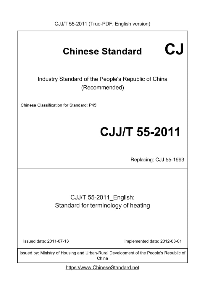 Basic dataStandard ID: CJJ/T 55-2011 (CJJ/T55-2011)Description (Translated English): Standard for terminology of heating Sector / Industry: Urban Construction Industry Standard (Recommended) Classification of Chinese Standard: P45 Classification of International Standard: 91.140.10 Word Count Estimation: 160,170 Date of Issue: 2011-07-13 Date of Implementation: 2012-03-01 Older Standard (superseded by this standard): CJJ 55-1993 Regulation (derived from): Ministry of Housing and Urban Notice No. 1064 Issuing agency(ies): Ministry of Housing and Urban-Rural Development of the People's Republic of China Summary: This standard applies to heating and related fields. Terms and their definitions for the central heating, heating to achieve the standardization of terminology, and promote the development of heating technology, the use of domestic and international exchanges, the development of this standard. Tips & Frequently Asked Questions:Question 1: How long will the true-PDF of CJJT55-2011_English be delivered?Answer: Upon your order, we will start to translate CJJT55-2011_English as soon as possible, and keep you informed of the progress. The lead time is typically 1 ~ 3 working days. The lengthier the document the longer the lead time.Question 2: Can I share the purchased PDF of CJJT55-2011_English with my colleagues?Answer: Yes. The purchased PDF of CJJT55-2011_English will be deemed to be sold to your employer/organization who actually pays for it, including your colleagues and your employer's intranet.Question 3: Does the price include tax/VAT?Answer: Yes. Our tax invoice, downloaded/delivered in 9 seconds, includes all tax/VAT and complies with 100+ countries' tax regulations (tax exempted in 100+ countries) -- See Avoidance of Double Taxation Agreements (DTAs): List of DTAs signed between Singapore and 100+ countriesQuestion 4: Do you accept my currency other than USD?Answer: Yes. If you need your currency to be printed on the invoice, please write an email to Sales@ChineseStandard.net. In 2 working-hours, we will create a special link for you to pay in any currencies. Otherwise, follow the normal steps: Add to Cart -- Checkout -- Select your currency to pay. |