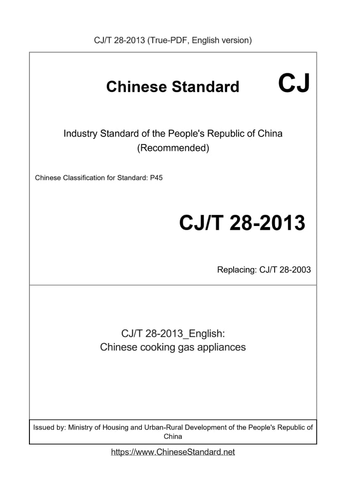 Delivery: <= 5 days. True-PDF full-copy in English will be manually translated and delivered via email. CJ/T 28-2013: Chinese cooking gas appliances Status: Valid CJ/T 28: Historical versions
