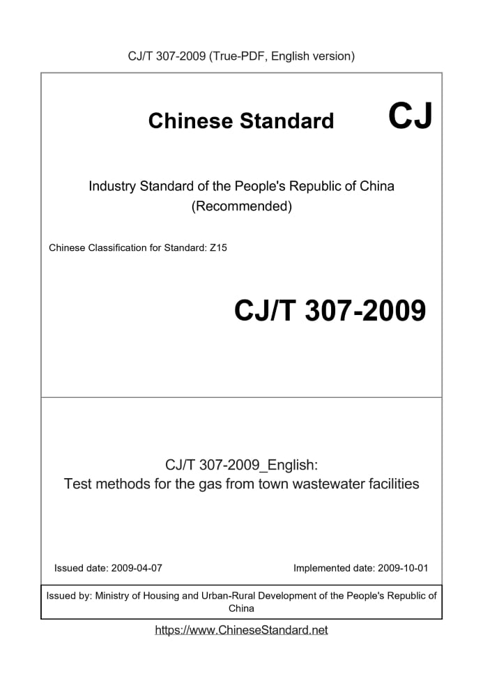 Delivery: <= 5 days. True-PDF full-copy in English will be manually translated and delivered via email. CJ/T 307-2009: Test methods for the gas from town wastewater facilities Status: Valid