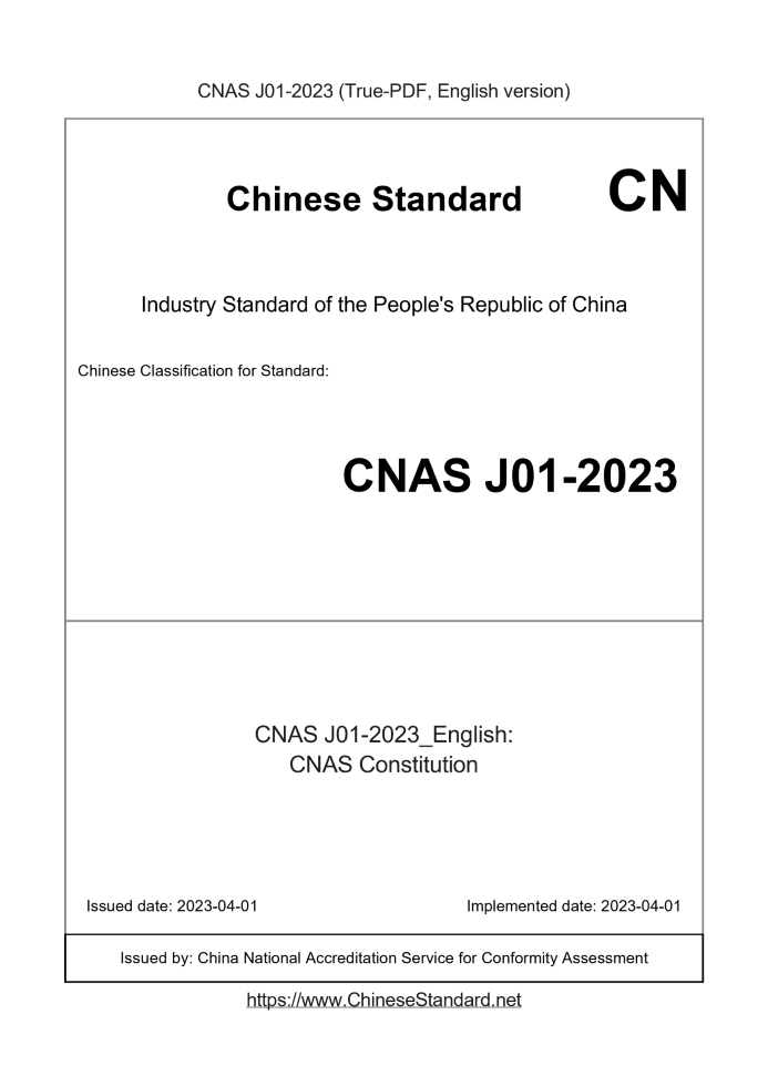 Delivery: <= 3 days. True-PDF full-copy in English will be manually translated and delivered via email. CNASJ01-2023: CNAS Constitution Status: Valid