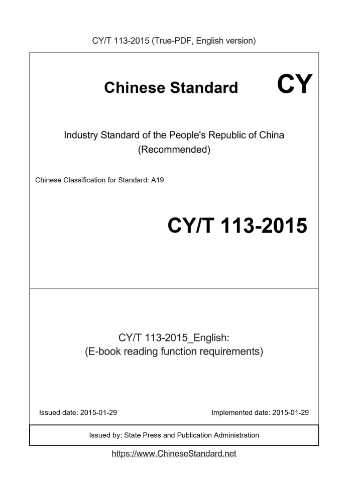 Delivery: <= 3 days. True-PDF full-copy in English will be manually translated and delivered via email. CYT113-2015: (E-book reading function requirements) Status: Valid