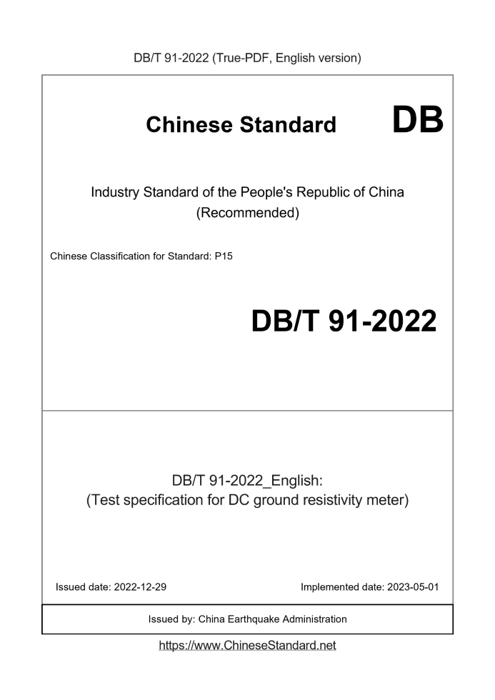 Delivery: <= 6 days. True-PDF full-copy in English will be manually translated and delivered via email. DBT91-2022: (Test specification for DC ground resistivity meter) Status: Valid