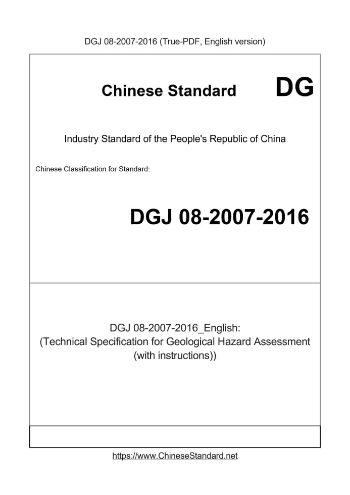 Delivery: <= 11 days. True-PDF full-copy in English will be manually translated and delivered via email. DGJ08-2007-2016: (Technical Specification for Geological Hazard Assessment (with instructions)) Status: Valid