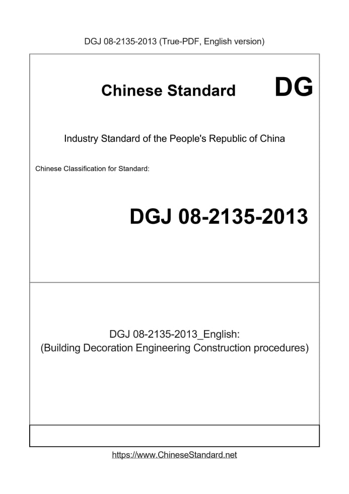 Delivery: <= 8 days. True-PDF full-copy in English will be manually translated and delivered via email. DGJ08-2135-2013: (Building Decoration Engineering Construction procedures) Status: Valid