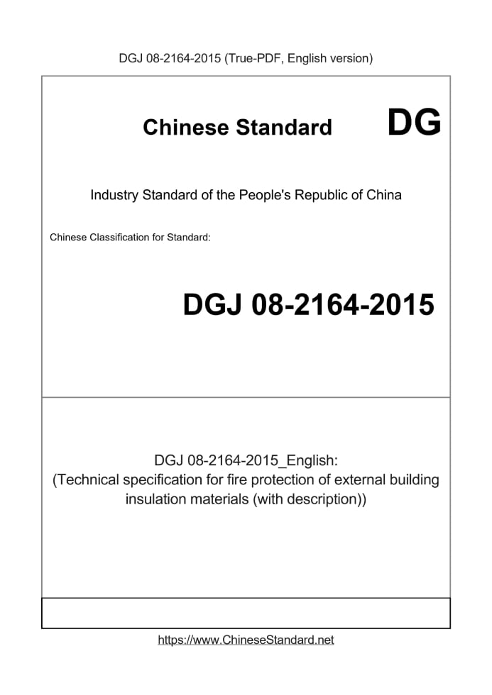 Delivery: <= 7 days. True-PDF full-copy in English will be manually translated and delivered via email. DGJ08-2164-2015: (Technical specification for fire protection of external building insulation materials (with description)) Status: Valid