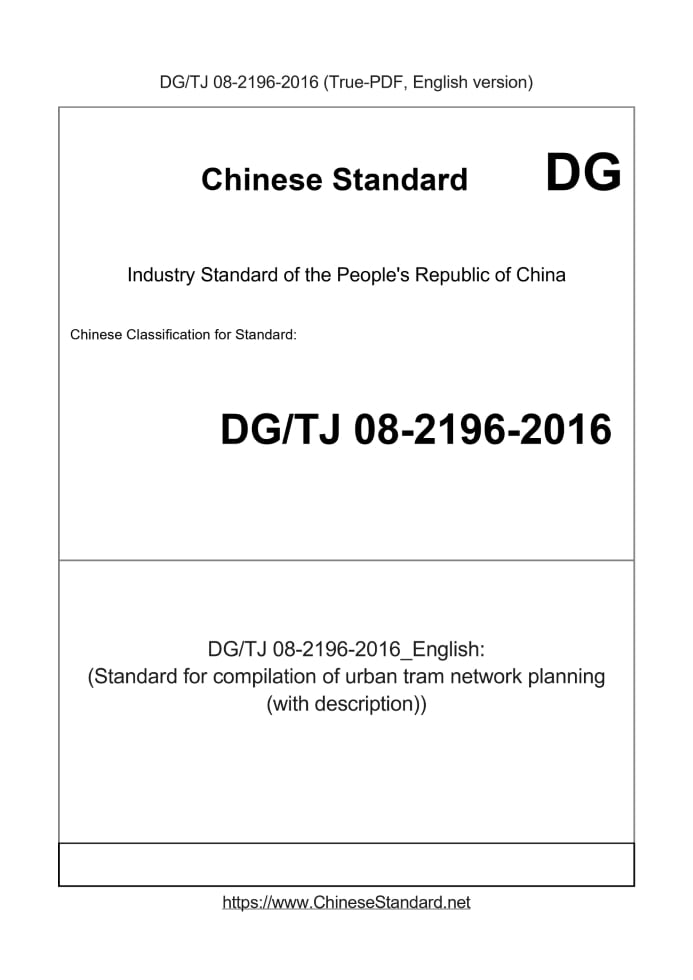 Delivery: <= 8 days. True-PDF full-copy in English will be manually translated and delivered via email. DGTJ08-2196-2016: (Standard for compilation of urban tram network planning (with description)) Status: Valid