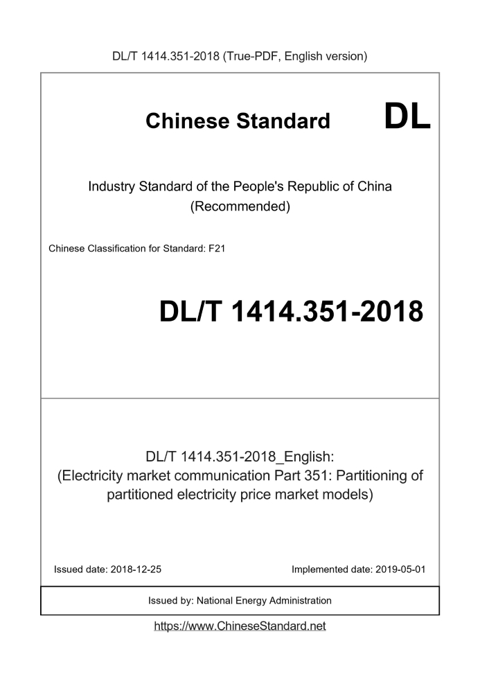 Delivery: <= 8 days. True-PDF full-copy in English will be manually translated and delivered via email. DL/T 1414.351-2018: (Electricity market communication Part 351: Partitioning of partitioned electricity price market models) Status: Valid