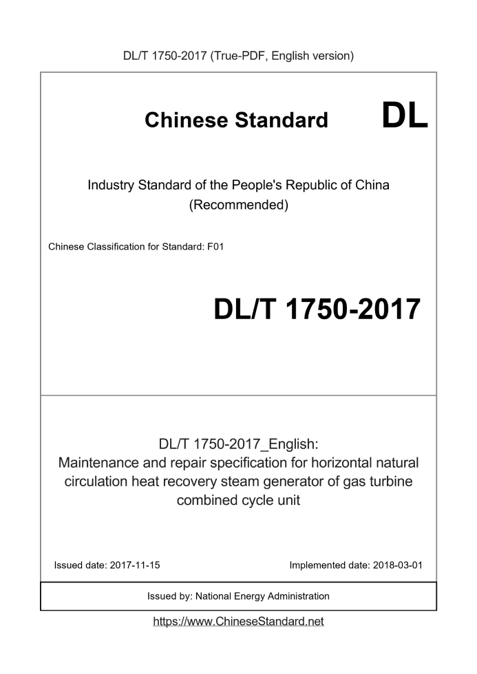 Delivery: <= 3 days. True-PDF full-copy in English will be manually translated and delivered via email. DL/T 1750-2017: Maintenance and repair specification for horizontal natural circulation heat recovery steam generator of gas turbine combined cycle unit Status: Valid