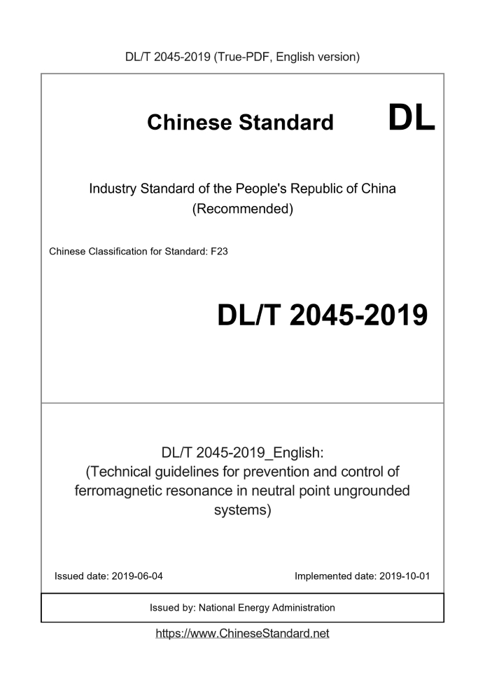 Delivery: <= 5 days. True-PDF full-copy in English will be manually translated and delivered via email. DL/T 2045-2019: (Technical guidelines for prevention and control of ferromagnetic resonance in neutral point ungrounded systems) Status: Valid