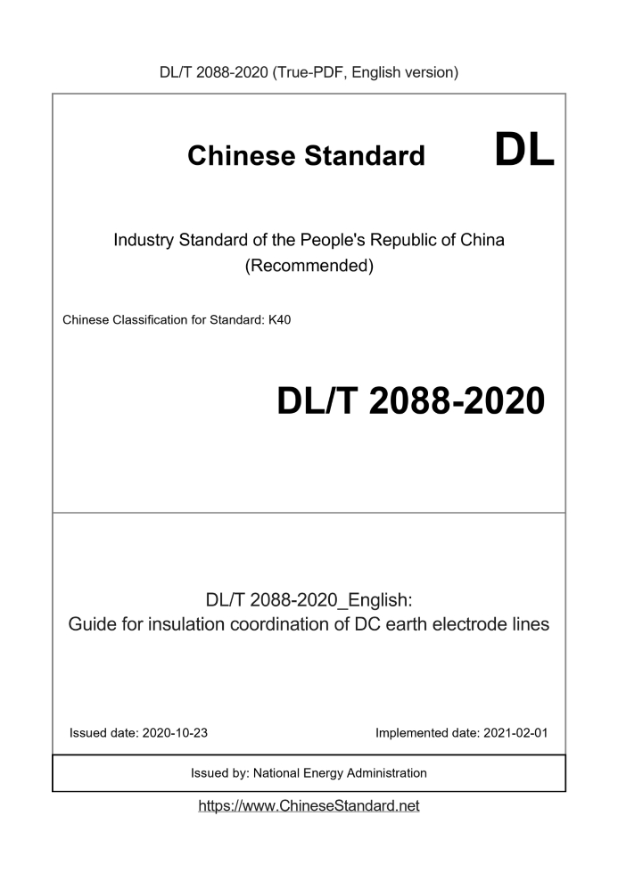 Delivery: <= 4 days. True-PDF full-copy in English will be manually translated and delivered via email. DL/T 2088-2020: Guide for insulation coordination of DC earth electrode lines Status: Valid