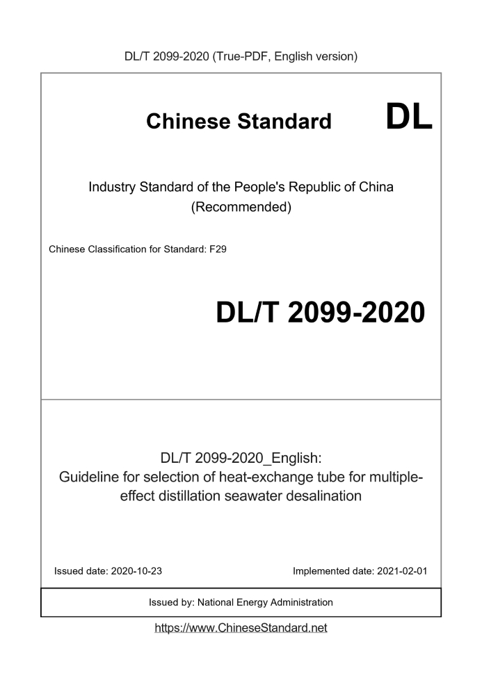 Delivery: <= 3 days. True-PDF full-copy in English will be manually translated and delivered via email. DL/T 2099-2020: Guideline for selection of heat-exchange tube for multiple-effect distillation seawater desalination Status: Valid