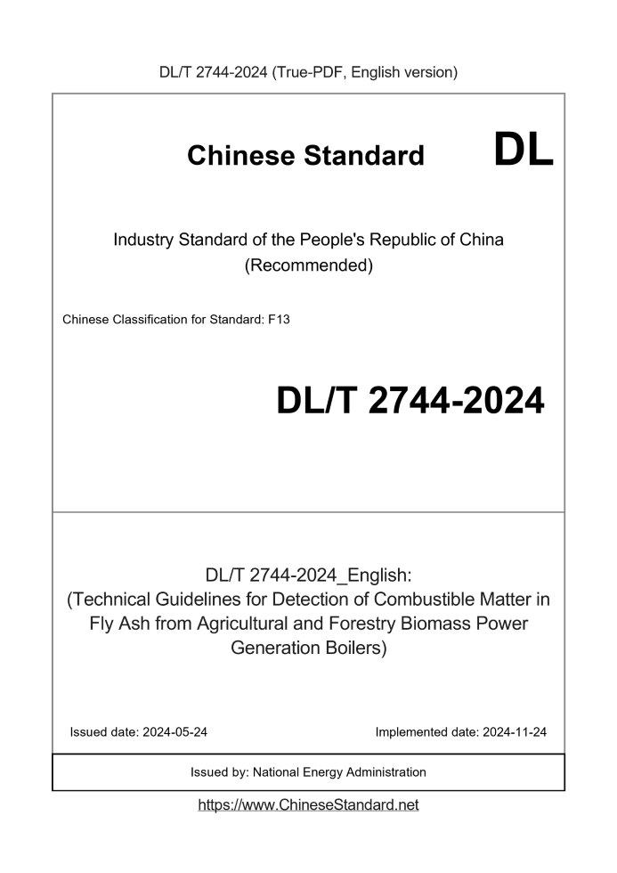 Delivery: <= 3 days. True-PDF full-copy in English will be manually translated and delivered via email. DL/T 2744-2024: (Technical Guidelines for Detection of Combustible Matter in Fly Ash from Agricultural and Forestry Biomass Power Generation Boilers) Status: Valid
