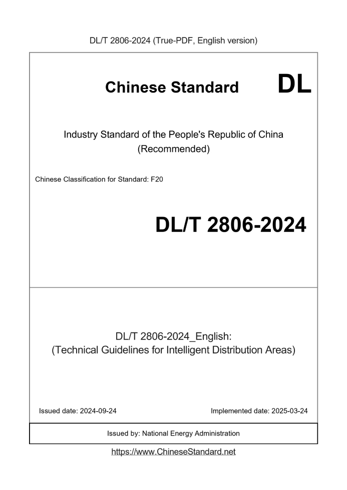 Delivery: <= 3 days. True-PDF full-copy in English will be manually translated and delivered via email. DL/T 2806-2024: (Technical Guidelines for Intelligent Distribution Areas) Status: Valid
