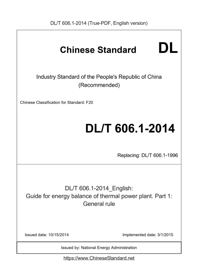Delivery: <= 3 days. True-PDF full-copy in English will be manually translated and delivered via email. DL/T 606.1-2014: Guide for energy balance of thermal power plant. Part 1: General rule Status: Valid DL/T 606.1: Historical versions