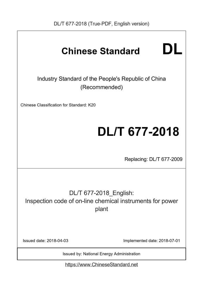 Delivery: <= 7 days. True-PDF full-copy in English will be manually translated and delivered via email. DL/T 677-2018: Inspection code of on-line chemical instruments for power plant Status: Valid DL/T 677: Historical versions