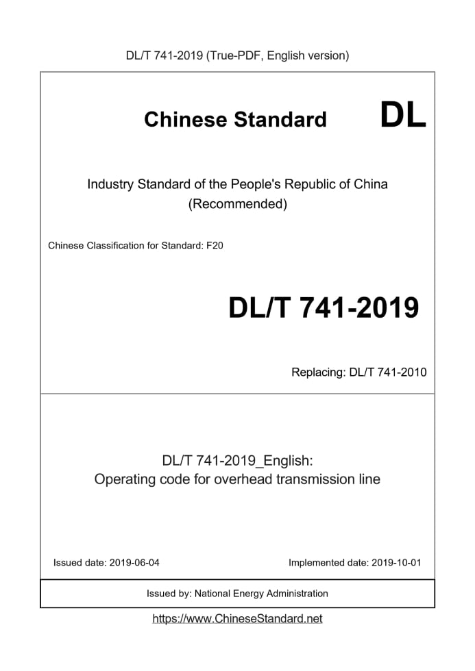 DL/T 741-2019 English PDFUS$899.00 · In stock