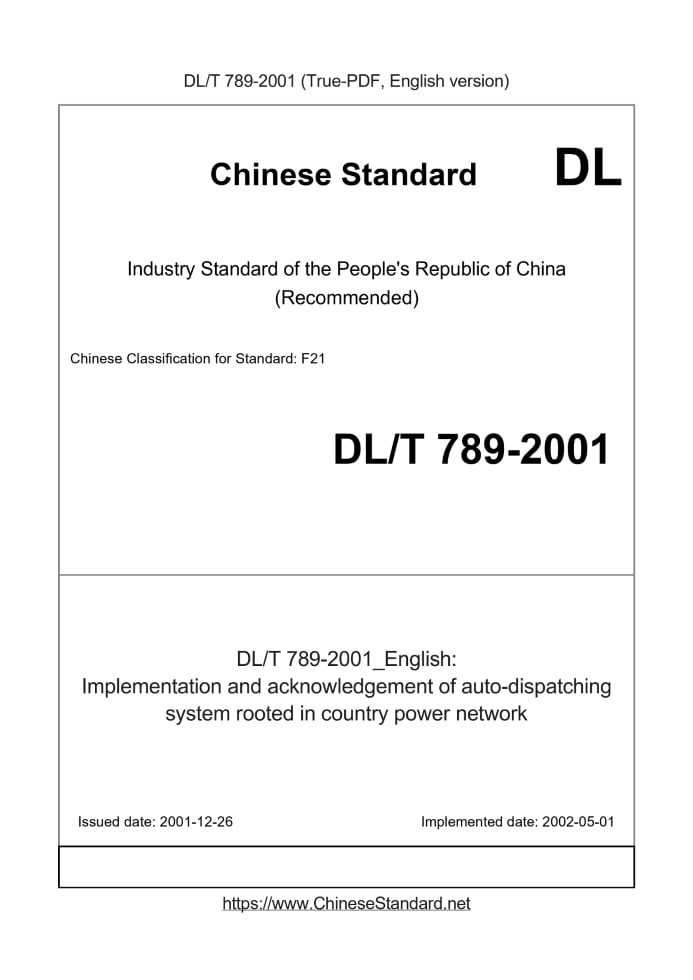 Delivery: <= 3 days. True-PDF full-copy in English will be manually translated and delivered via email. DL/T 789-2001: Implementation and acknowledgement of auto-dispatching system rooted in country power network Status: Valid