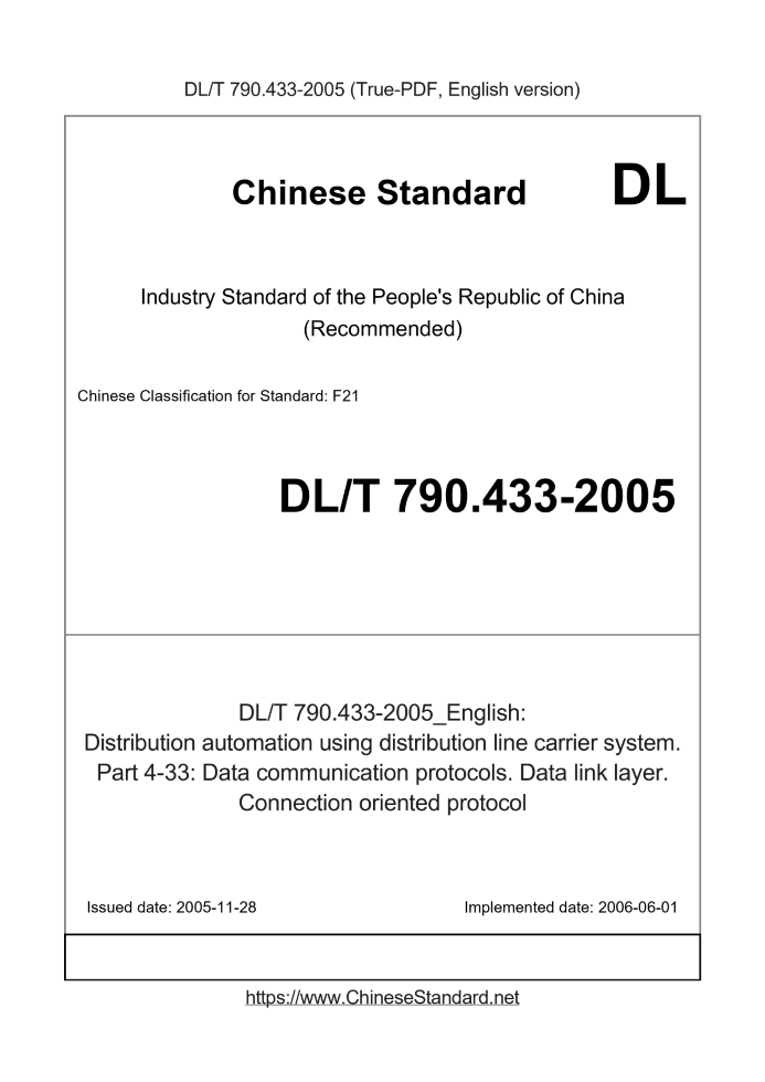 Delivery: <= 3 days. True-PDF full-copy in English will be manually translated and delivered via email. DL/T 790.433-2005: Distribution automation using distribution line carrier system. Part 4-33: Data communication protocols. Data link layer. Connection oriented protocol Status: Valid