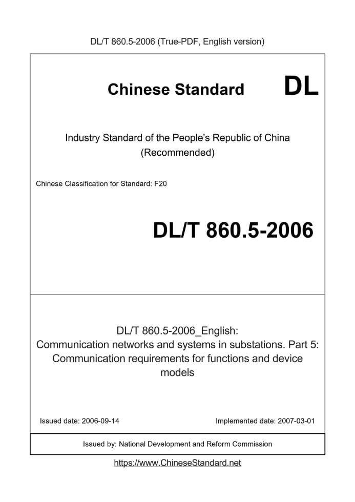 Basic dataStandard ID: DL/T 860.5-2006 (DL/T860.5-2006)Description (Translated English): Communication networks and systems in substations. Part 5: Communication requirements for functions and device models Sector / Industry: Electricity & Power Industry Standard (Recommended) Classification of Chinese Standard: F20 Classification of International Standard: 29.240.01 Word Count Estimation: 111,197 Date of Issue: 2006-09-14 Date of Implementation: 2007-03-01 Quoted Standard: DL/T 860.2; IEC 60044-8; IEC 60870-4; IEC 61346; IEC 62053-22; IEEE STD C37.2-1996 Adopted Standard: IEC 61850-5-2003, IDT Regulation (derived from): NDRC Notice No. 63 of 2006 Issuing agency(ies): National Development and Reform Commission Summary: This standard applies to substation automation system, provides communication between intelligent electronic devices and related systems. This section provides substation automation system functions and device models communication requirements, identify all known functions and communication requirements. |