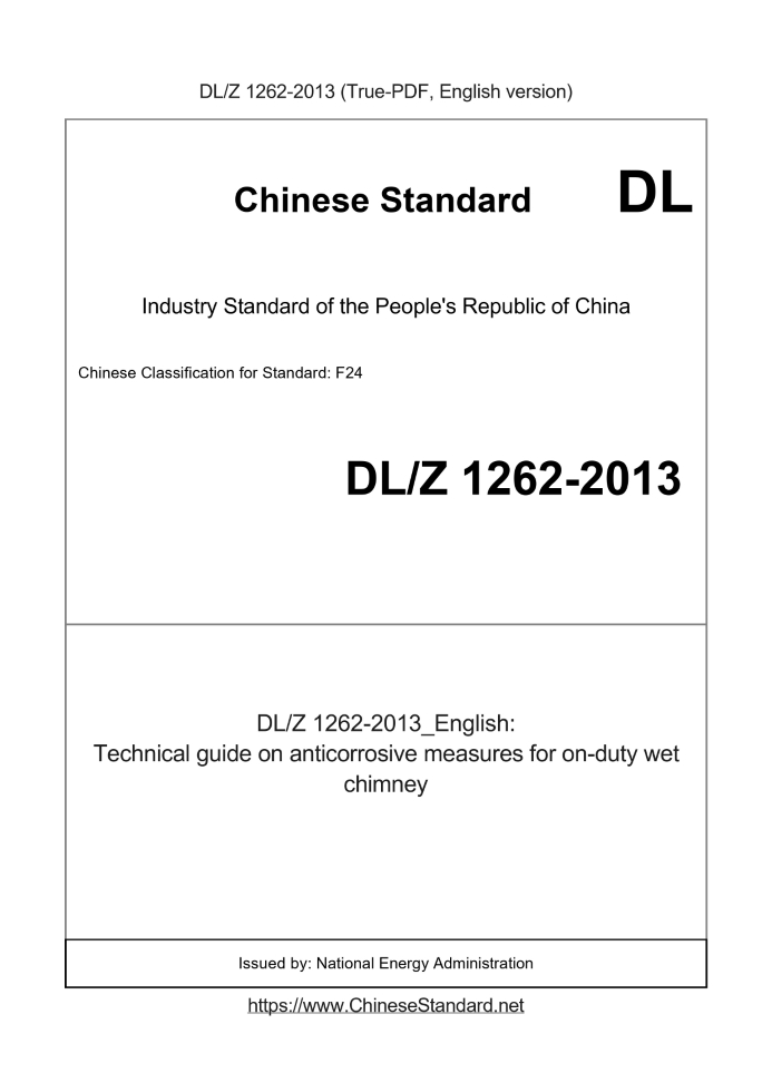 Delivery: <= 3 days. True-PDF full-copy in English will be manually translated and delivered via email. DLZ1262-2013: Technical guide on anticorrosive measures for on-duty wet chimney Status: Valid