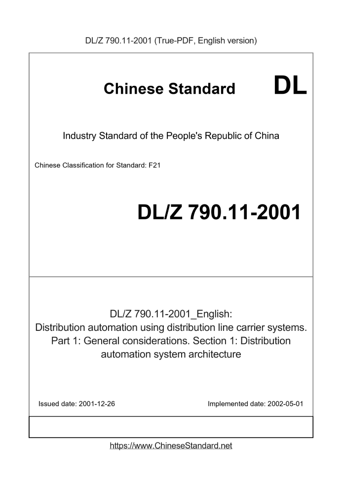 Delivery: <= 4 days. True-PDF full-copy in English will be manually translated and delivered via email. DLZ790.11-2001: Distribution automation using distribution line carrier systems. Part 1: General considerations. Section 1: Distribution automation system architecture Status: Valid