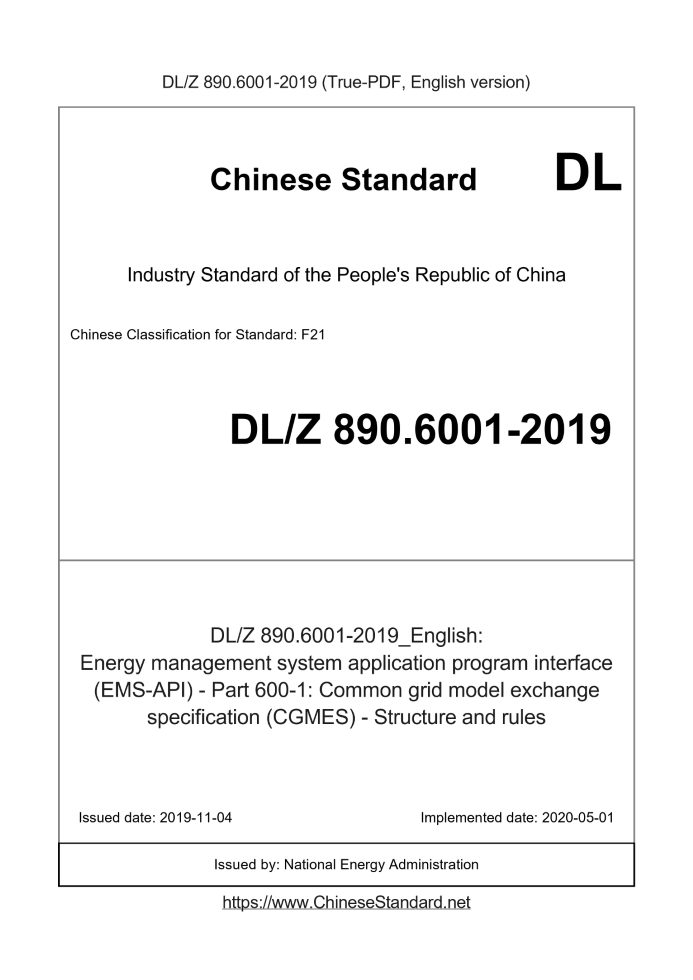 Delivery: <= 8 days. True-PDF full-copy in English will be manually translated and delivered via email. DLZ890.6001-2019: Energy management system application program interface (EMS-API) - Part 600-1: Common grid model exchange specification (CGMES) - Structure and rules Status: Valid