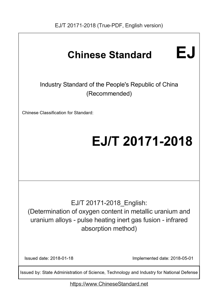 Basic dataStandard ID: EJ/T 20171-2018 (EJ/T20171-2018)Description (Translated English): (Determination of oxygen content in metallic uranium and uranium alloys - pulse heating inert gas fusion - infrared absorption method) Sector / Industry: Nuclear Industry Standard (Recommended) Date of Issue: 2018-01-18 Date of Implementation: 2018-05-01 Issuing agency(ies): State Administration of Science, Technology and Industry for National Defense Tips & Frequently Asked Questions:Question 1: How long will the true-PDF of EJ/T 20171-2018_English be delivered?Answer: Upon your order, we will start to translate EJ/T 20171-2018_English as soon as possible, and keep you informed of the progress. The lead time is typically 1 ~ 3 working days. The lengthier the document the longer the lead time.Question 2: Can I share the purchased PDF of EJ/T 20171-2018_English with my colleagues?Answer: Yes. The purchased PDF of EJ/T 20171-2018_English will be deemed to be sold to your employer/organization who actually pays for it, including your colleagues and your employer's intranet.Question 3: Does the price include tax/VAT?Answer: Yes. Our tax invoice, downloaded/delivered in 9 seconds, includes all tax/VAT and complies with 100+ countries' tax regulations (tax exempted in 100+ countries) -- See Avoidance of Double Taxation Agreements (DTAs): List of DTAs signed between Singapore and 100+ countriesQuestion 4: Do you accept my currency other than USD?Answer: Yes. If you need your currency to be printed on the invoice, please write an email to Sales@ChineseStandard.net. In 2 working-hours, we will create a special link for you to pay in any currencies. Otherwise, follow the normal steps: Add to Cart -- Checkout -- Select your currency to pay. |