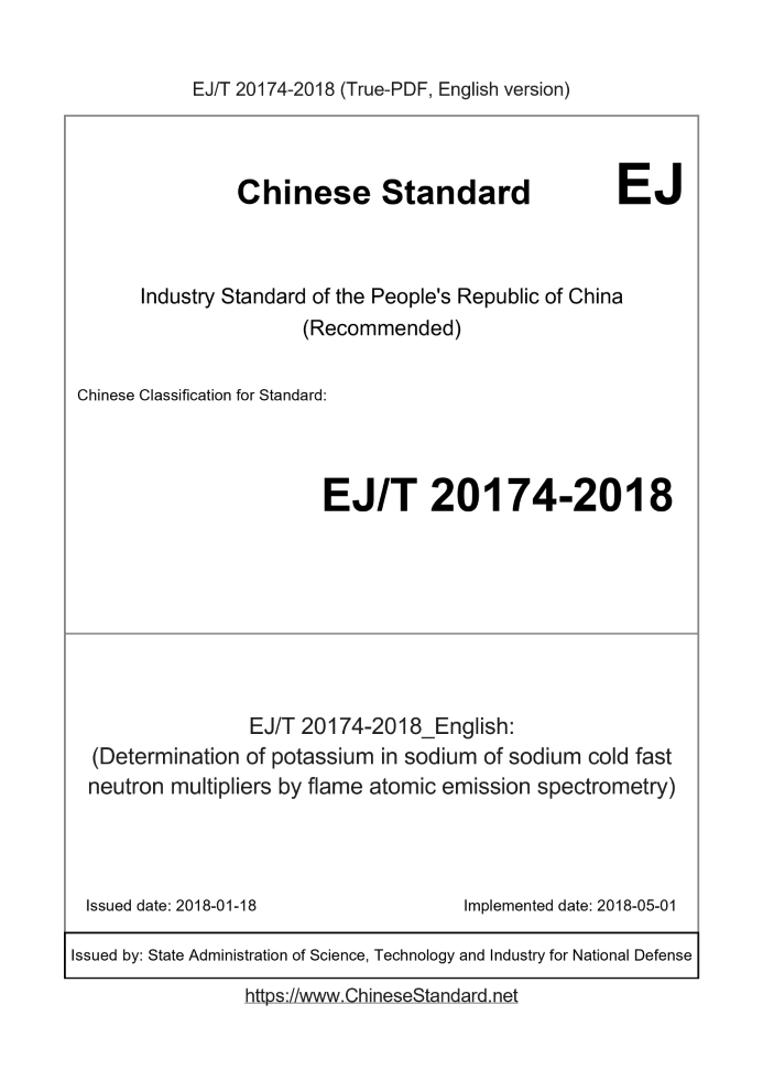 Basic dataStandard ID: EJ/T 20174-2018 (EJ/T20174-2018)Description (Translated English): (Determination of potassium in sodium of sodium cold fast neutron multipliers by flame atomic emission spectrometry) Sector / Industry: Nuclear Industry Standard (Recommended) Date of Issue: 2018-01-18 Date of Implementation: 2018-05-01 Issuing agency(ies): State Administration of Science, Technology and Industry for National Defense Tips & Frequently Asked Questions:Question 1: How long will the true-PDF of EJ/T 20174-2018_English be delivered?Answer: Upon your order, we will start to translate EJ/T 20174-2018_English as soon as possible, and keep you informed of the progress. The lead time is typically 1 ~ 3 working days. The lengthier the document the longer the lead time.Question 2: Can I share the purchased PDF of EJ/T 20174-2018_English with my colleagues?Answer: Yes. The purchased PDF of EJ/T 20174-2018_English will be deemed to be sold to your employer/organization who actually pays for it, including your colleagues and your employer's intranet.Question 3: Does the price include tax/VAT?Answer: Yes. Our tax invoice, downloaded/delivered in 9 seconds, includes all tax/VAT and complies with 100+ countries' tax regulations (tax exempted in 100+ countries) -- See Avoidance of Double Taxation Agreements (DTAs): List of DTAs signed between Singapore and 100+ countriesQuestion 4: Do you accept my currency other than USD?Answer: Yes. If you need your currency to be printed on the invoice, please write an email to Sales@ChineseStandard.net. In 2 working-hours, we will create a special link for you to pay in any currencies. Otherwise, follow the normal steps: Add to Cart -- Checkout -- Select your currency to pay. |
