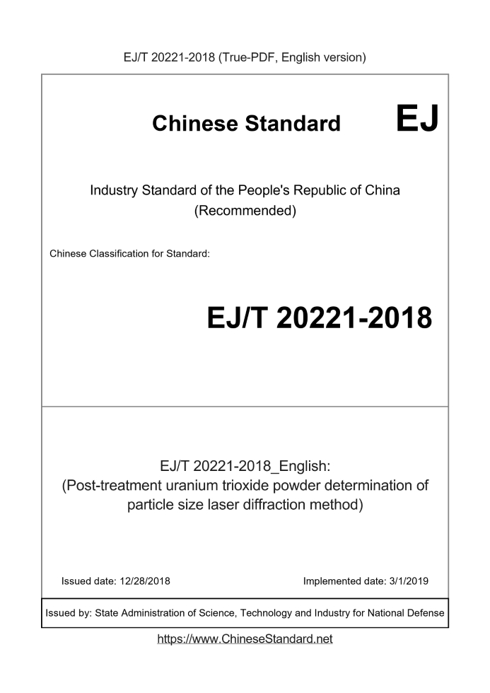 Basic dataStandard ID: EJ/T 20221-2018 (EJ/T20221-2018)Description (Translated English): (Post-treatment uranium trioxide powder determination of particle size laser diffraction method) Sector / Industry: Nuclear Industry Standard (Recommended) Date of Issue: 12/28/2018 Date of Implementation: 3/1/2019 Issuing agency(ies): State Administration of Science, Technology and Industry for National Defense Tips & Frequently Asked Questions:Question 1: How long will the true-PDF of EJ/T 20221-2018_English be delivered?Answer: Upon your order, we will start to translate EJ/T 20221-2018_English as soon as possible, and keep you informed of the progress. The lead time is typically 1 ~ 3 working days. The lengthier the document the longer the lead time.Question 2: Can I share the purchased PDF of EJ/T 20221-2018_English with my colleagues?Answer: Yes. The purchased PDF of EJ/T 20221-2018_English will be deemed to be sold to your employer/organization who actually pays for it, including your colleagues and your employer's intranet.Question 3: Does the price include tax/VAT?Answer: Yes. Our tax invoice, downloaded/delivered in 9 seconds, includes all tax/VAT and complies with 100+ countries' tax regulations (tax exempted in 100+ countries) -- See Avoidance of Double Taxation Agreements (DTAs): List of DTAs signed between Singapore and 100+ countriesQuestion 4: Do you accept my currency other than USD?Answer: Yes. If you need your currency to be printed on the invoice, please write an email to Sales@ChineseStandard.net. In 2 working-hours, we will create a special link for you to pay in any currencies. Otherwise, follow the normal steps: Add to Cart -- Checkout -- Select your currency to pay. |