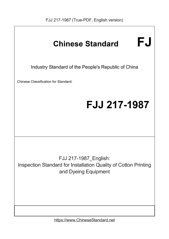 Basic dataStandard ID: FJJ 217-1987 (FJJ217-1987)Description (Translated English): Inspection Standard for Installation Quality of Cotton Printing and Dyeing Equipment Sector / Industry: Chinese Industry Standard Regulation (derived from): National Engineering Construction Standardized Information Network Tips & Frequently Asked Questions:Question 1: How long will the true-PDF of FJJ 217-1987_English be delivered?Answer: Upon your order, we will start to translate FJJ 217-1987_English as soon as possible, and keep you informed of the progress. The lead time is typically 1 ~ 3 working days. The lengthier the document the longer the lead time.Question 2: Can I share the purchased PDF of FJJ 217-1987_English with my colleagues?Answer: Yes. The purchased PDF of FJJ 217-1987_English will be deemed to be sold to your employer/organization who actually pays for it, including your colleagues and your employer's intranet.Question 3: Does the price include tax/VAT?Answer: Yes. Our tax invoice, downloaded/delivered in 9 seconds, includes all tax/VAT and complies with 100+ countries' tax regulations (tax exempted in 100+ countries) -- See Avoidance of Double Taxation Agreements (DTAs): List of DTAs signed between Singapore and 100+ countriesQuestion 4: Do you accept my currency other than USD?Answer: Yes. If you need your currency to be printed on the invoice, please write an email to Sales@ChineseStandard.net. In 2 working-hours, we will create a special link for you to pay in any currencies. Otherwise, follow the normal steps: Add to Cart -- Checkout -- Select your currency to pay. |