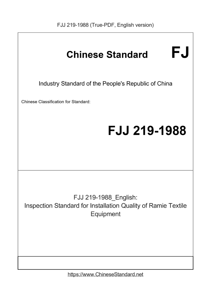 Basic dataStandard ID: FJJ 219-1988 (FJJ219-1988)Description (Translated English): Inspection Standard for Installation Quality of Ramie Textile Equipment Sector / Industry: Chinese Industry Standard Regulation (derived from): National Engineering Construction Standardized Information Network Tips & Frequently Asked Questions:Question 1: How long will the true-PDF of FJJ 219-1988_English be delivered?Answer: Upon your order, we will start to translate FJJ 219-1988_English as soon as possible, and keep you informed of the progress. The lead time is typically 1 ~ 3 working days. The lengthier the document the longer the lead time.Question 2: Can I share the purchased PDF of FJJ 219-1988_English with my colleagues?Answer: Yes. The purchased PDF of FJJ 219-1988_English will be deemed to be sold to your employer/organization who actually pays for it, including your colleagues and your employer's intranet.Question 3: Does the price include tax/VAT?Answer: Yes. Our tax invoice, downloaded/delivered in 9 seconds, includes all tax/VAT and complies with 100+ countries' tax regulations (tax exempted in 100+ countries) -- See Avoidance of Double Taxation Agreements (DTAs): List of DTAs signed between Singapore and 100+ countriesQuestion 4: Do you accept my currency other than USD?Answer: Yes. If you need your currency to be printed on the invoice, please write an email to Sales@ChineseStandard.net. In 2 working-hours, we will create a special link for you to pay in any currencies. Otherwise, follow the normal steps: Add to Cart -- Checkout -- Select your currency to pay. |