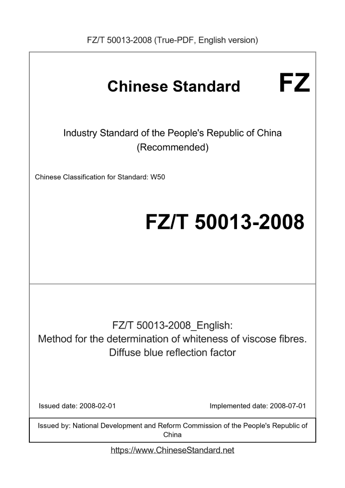 FZ/T 50013-2008 English PDFUS$159.00 · In stock