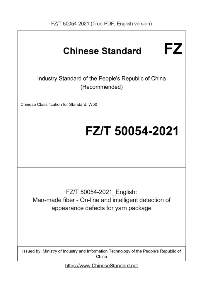Delivery: <= 3 days. True-PDF full-copy in English will be manually translated and delivered via email. FZ/T 50054-2021: Man-made fiber - On-line and intelligent detection of appearance defects for yarn package Status: Valid