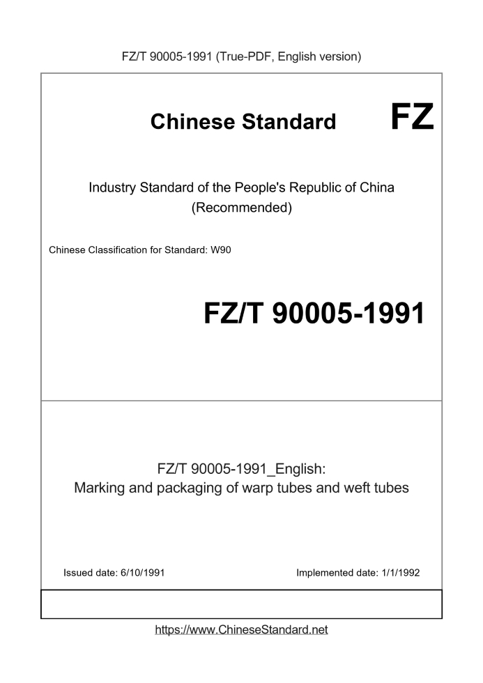 Delivery: <= 2 days. True-PDF full-copy in English will be manually translated and delivered via email. FZ/T 90005-1991: Marking and packaging of warp tubes and weft tubes