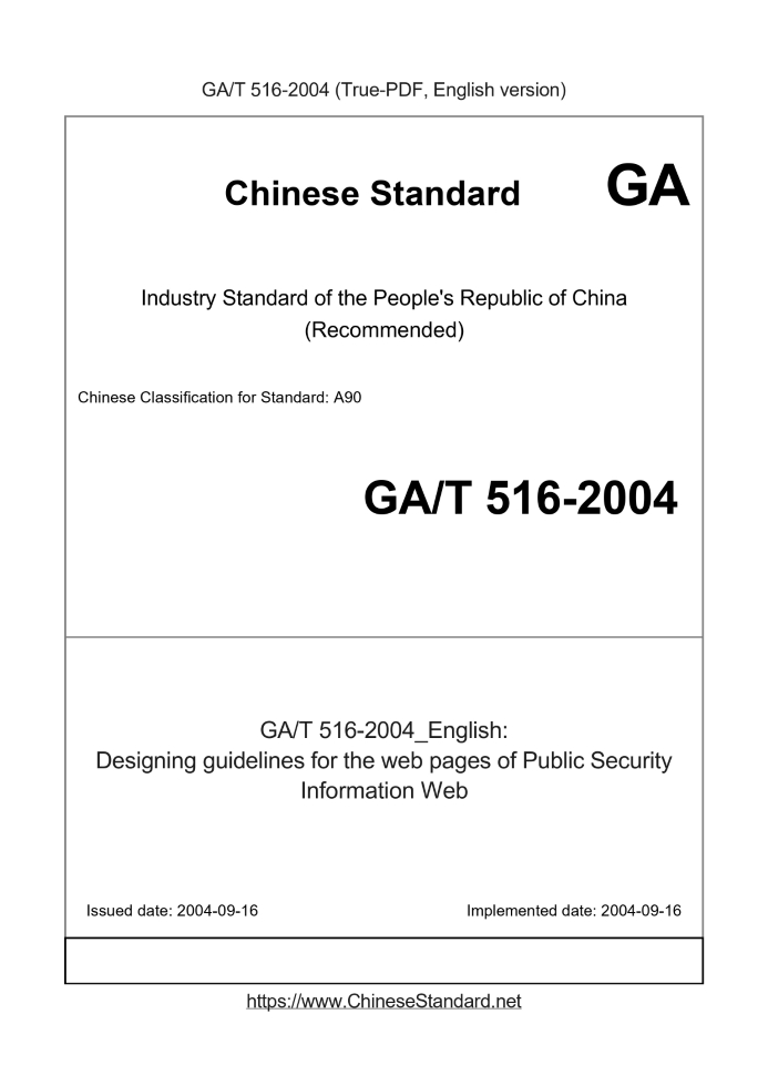 GA/T 516-2004 English PDFUS$919.00 ยท In stock