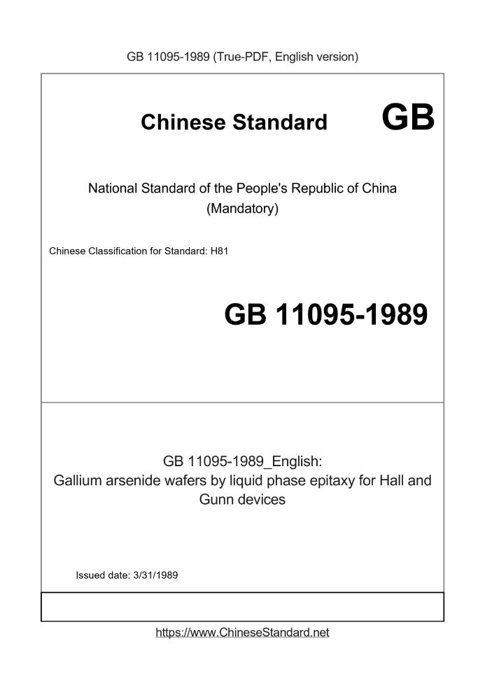 | GB 11095-1989 | English | RFQ | ASK | 3 days [Need to translate] | Gallium arsenide wafers by liquid phase epitaxy for Hall and Gunn devices |