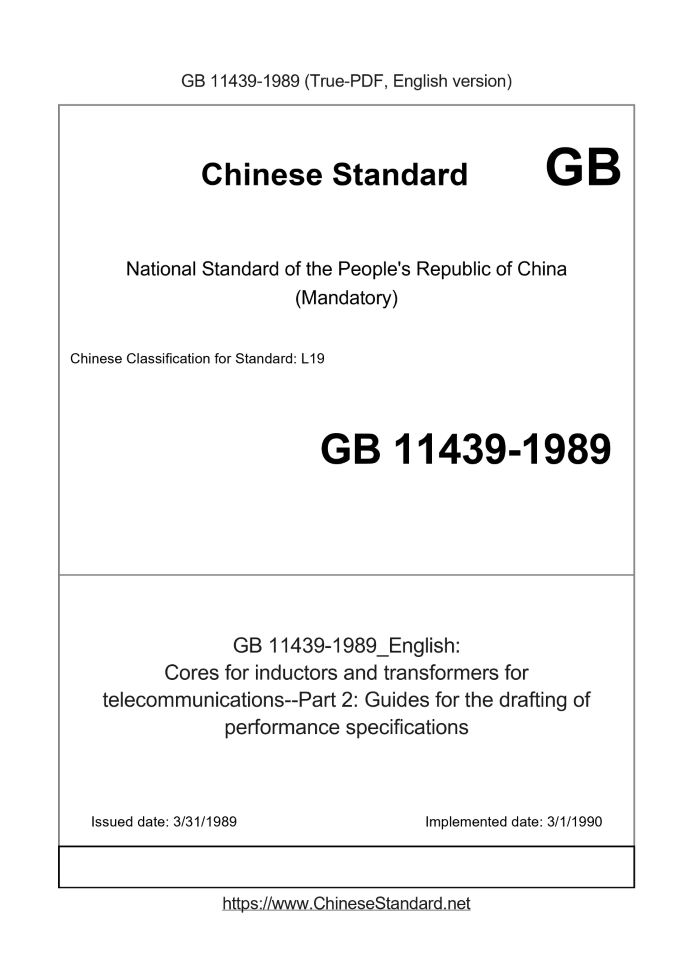 Delivery: <= 4 days. True-PDF full-copy in English will be manually translated and delivered via email. GB 11439-1989: Cores for inductors and transformers for telecommunications--Part 2: Guides for the drafting of performance specifications Status: Obsolete