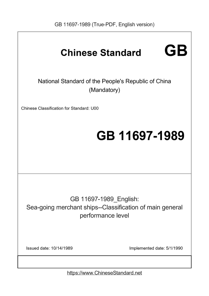 GB 11697-1989: Sea-going merchant ships--Classification of main general performance level