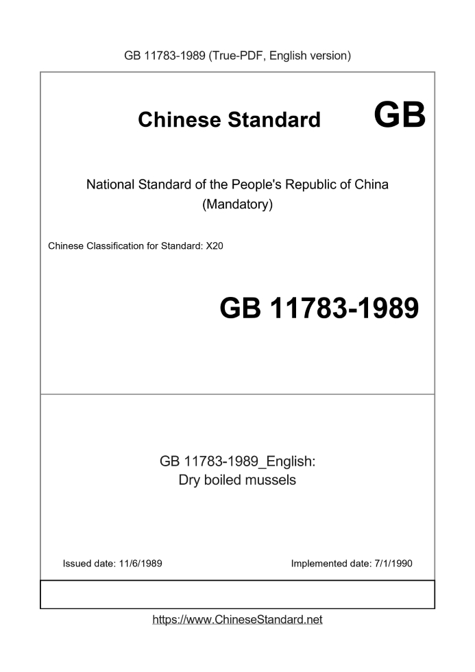 Delivery: <= 3 days. True-PDF full-copy in English will be manually translated and delivered via email. GB 11783-1989: Dry boiled mussels Status: Obsolete