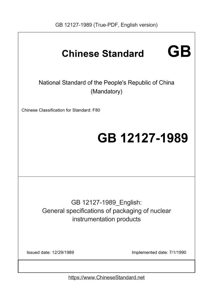 GB 12127-1989279 Add to Cart 3 days General specifications of packaging of nuclear instrumentation products Obsolete