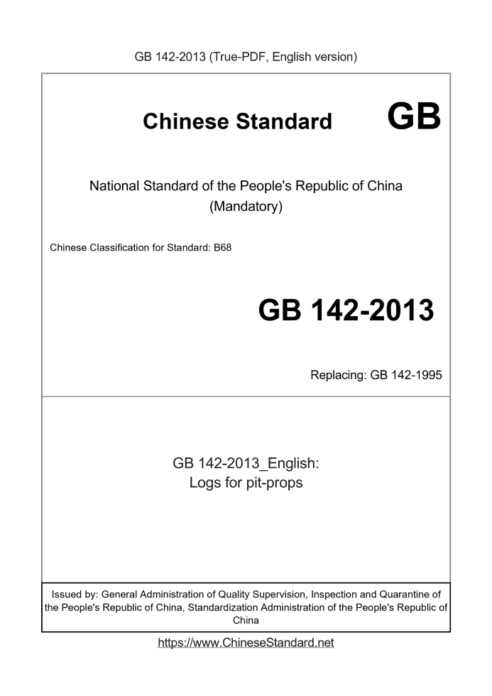 Delivery: <= 3 days. True-PDF full-copy in English will be manually translated and delivered via email. GB 142-2013: Logs for pit-props Status: Valid GB 142: Historical versions